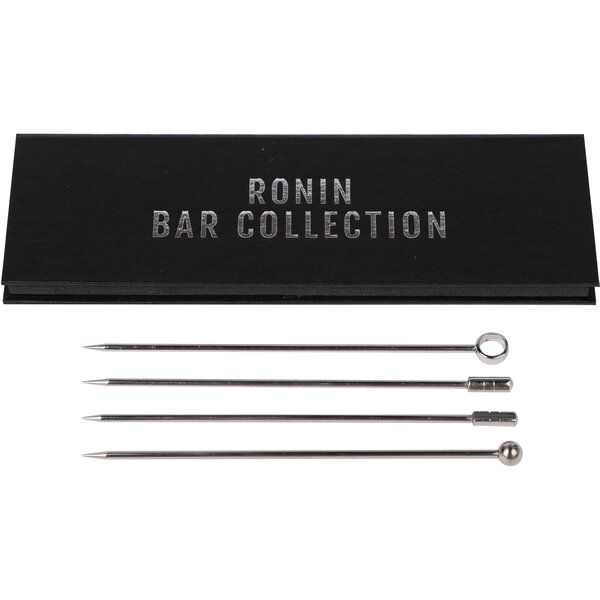 4er Set Cocktail Picks, Edelstahl, silber/grau/taupe. 4 Designs, je 10.5 cm lang. Marke: 47 Ronin. "Cocktail Pick".